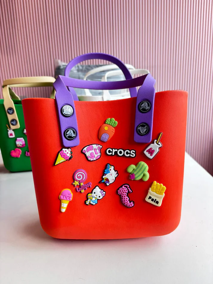 Discover the perfect blend of style and functionality with our Crocs bag. Designed for versatility, this tote bag is made from premium silicone material, making it waterproof, washable, and perfect for beach days, boat trips, gym sessions, and everyday errands.